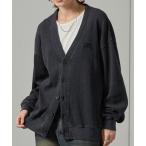 カーディガン 「Alfred Alex」ヴィンテージスノーウォッシュ加工ワンポイント刺繍ワッフルVネックカーディガン メンズ レディース