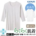 グンゼ GUNZE 愛情らくらく ワンタッチ シャツ メンズ 肌着 7分袖 半袖 長袖 インナー 前開き SEKマーク 抗菌 防臭 保湿 綿100% 介護 HWB217 爆買