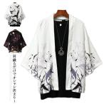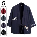羽織 メンズ アウター 花柄 鶴柄 7分袖 浴衣風 トップス カーディガン 薄手 はおり ショート丈 ゆったり 涼しい 春夏秋 おしゃれ