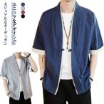 開襟シャツ 和風 7分袖 無地 メンズ メンズ 夏 カーディガン トップス ゆったり 羽織 パーカー アウター 大きいサイズ 薄手 麻 和服 夏 春
