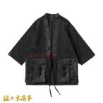 メンズ カーディガン 羽織 7分袖 半袖 機能 ジャンパー Vネック ストリート系 和風 パンク ロング丈 和式コート 多いポケット 防水