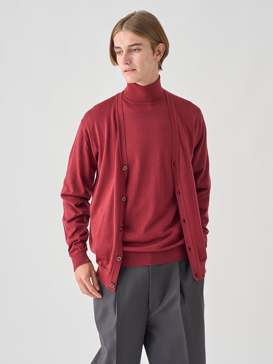 JOHN SMEDLEY Vネック長袖ニットカーディガン | HALIN | 30G MODERN FIT ジョンスメドレー トップス ニット レッド【送料無料】