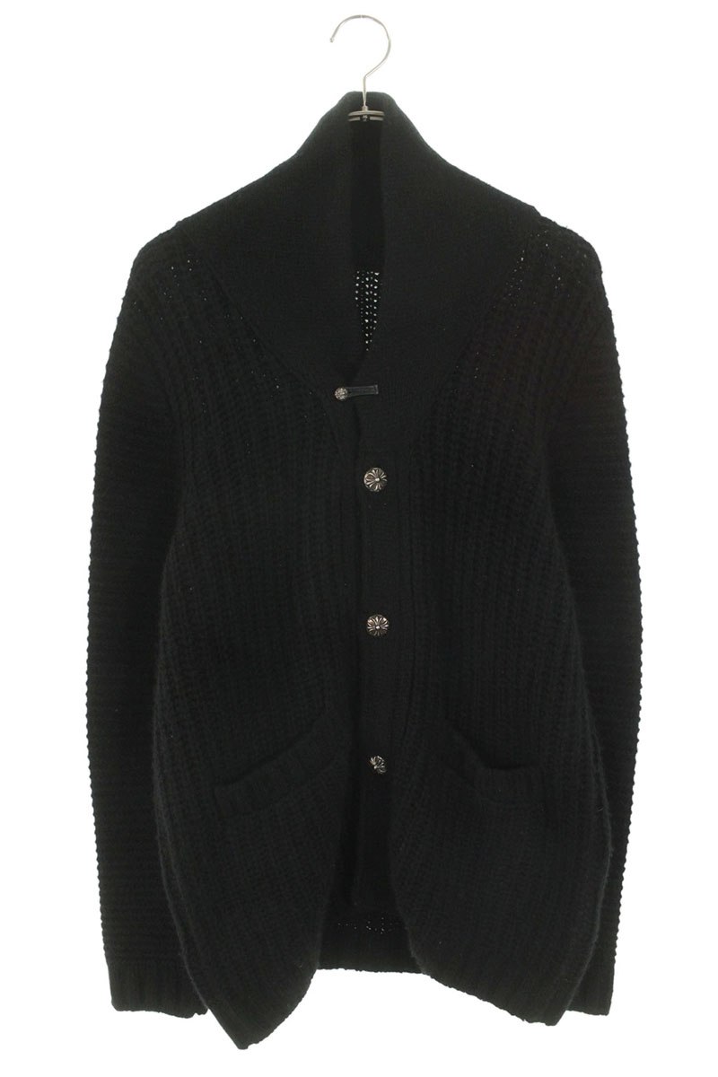 クロムハーツ Chrome Hearts サイズ:L クロスボールボタンショールカラーカシミアニットカーディガン(ブラック×シルバー)【220152】【OS06】【メンズ】【中古】bb422#rinkan*C