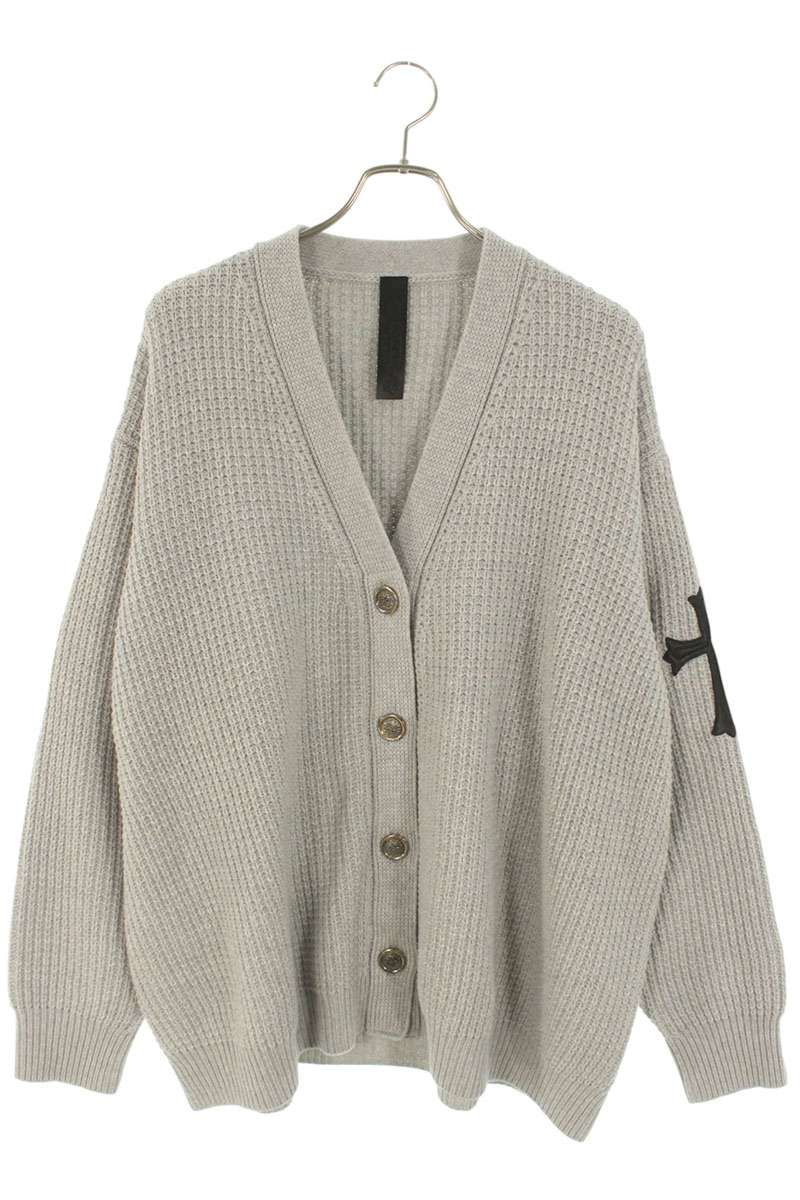 クロムハーツ Chrome Hearts サイズ:L HIT & RUN CARDIGAN クロスパッチカシミヤニットカーディガン(グレー×ブラック×シルバー)【520152】【GZ11】【メンズ】【中古】bb328#rinkan*S