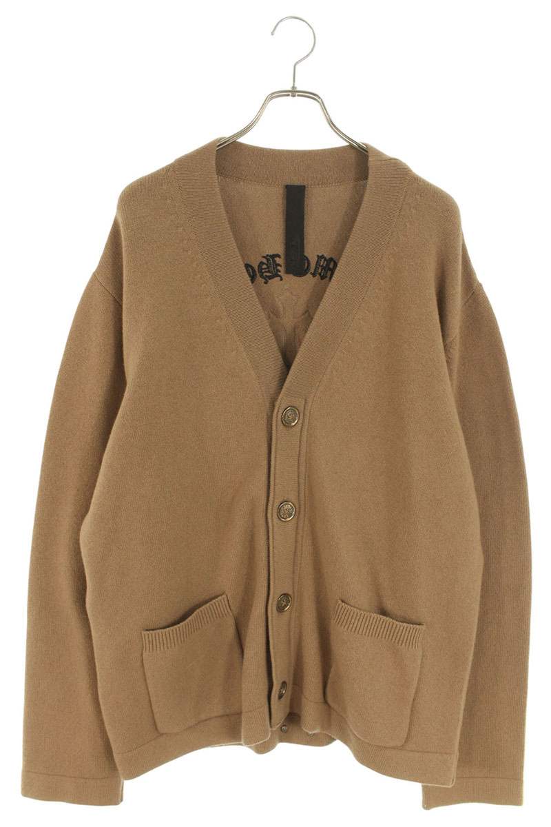 クロムハーツ Chrome Hearts サイズ:L SAILIN ON CHSMR ロゴ刺繍セメタリークロスパッチカシミヤニットカーディガン(ブラウン×ブラック)【821152】【SJ02】【メンズ】【中古】bb396#rinkan*A