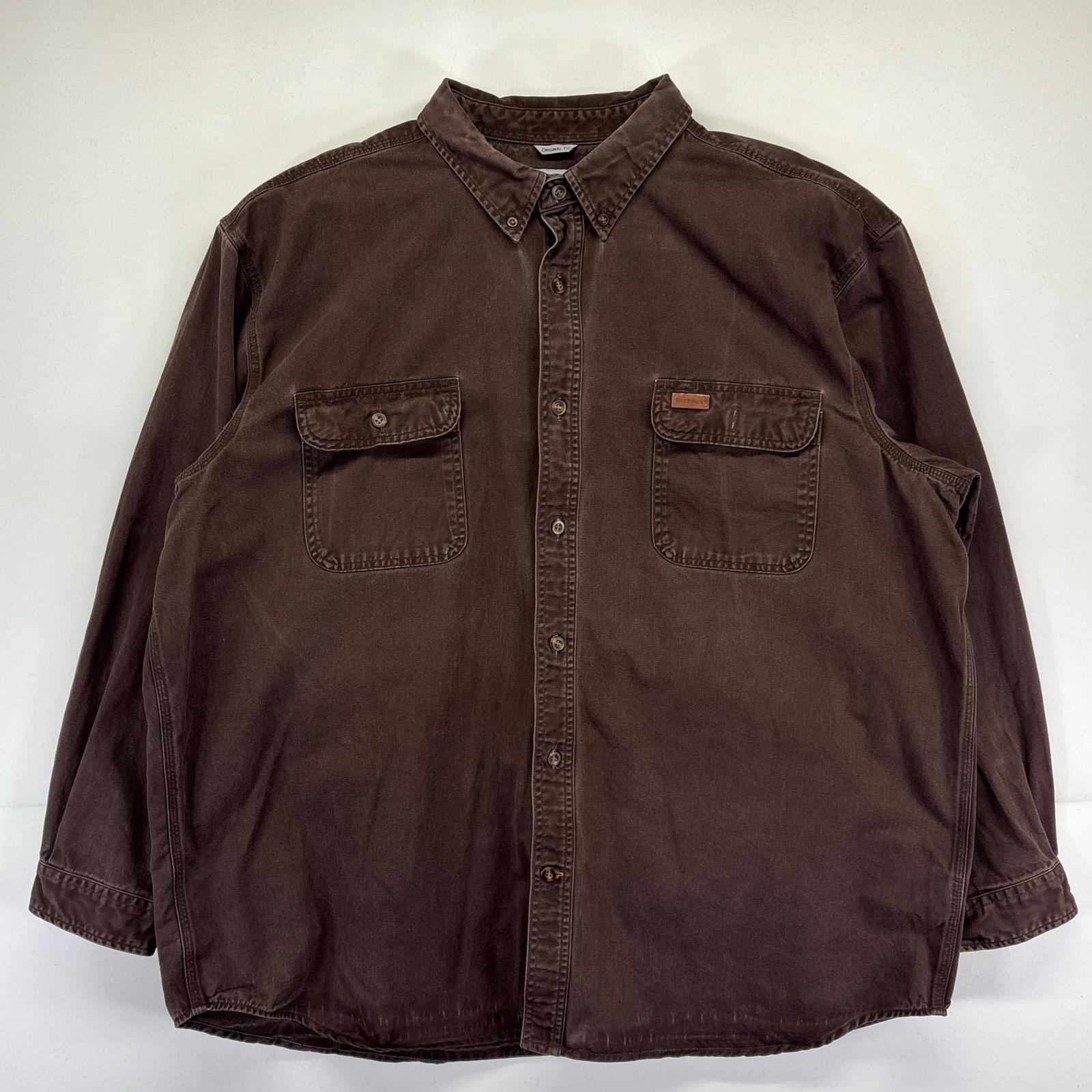 古着 カーハート Carhartt 長袖シャツ 大きいサイズ シャツジャケット ワンポイントロゴ ワークシャツ 3XL ブラウン メンズ