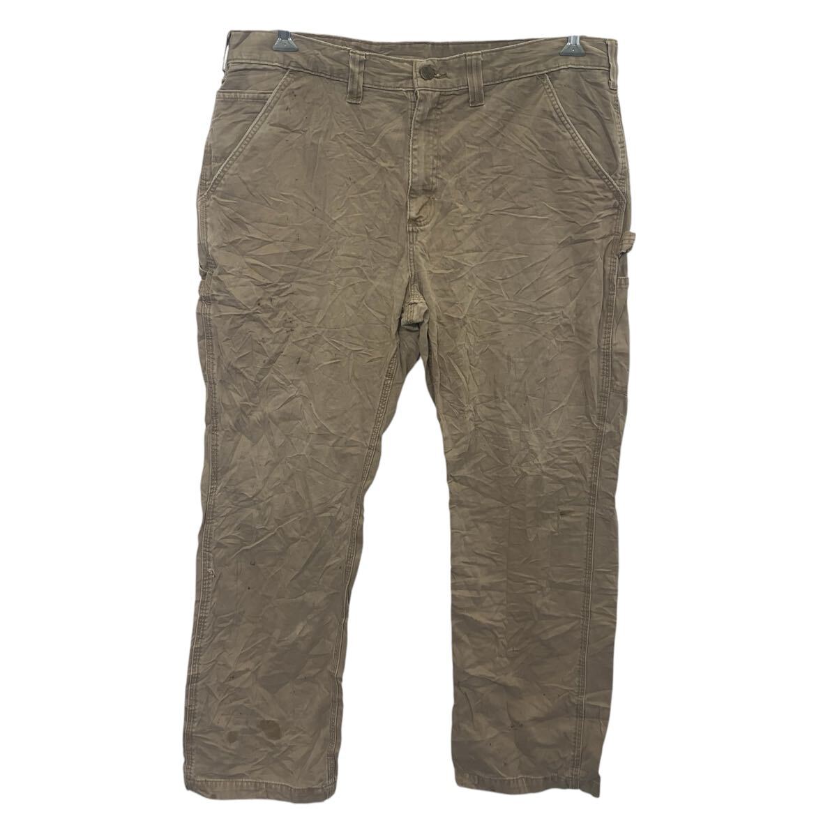 Carhartt ワークパンツ W36 ライトカーキ カーハート ジップアップ ワーク ペインター カーゴパンツ 無地 古着卸 アメリカ仕入 2508-600