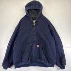 古着 カーハート Carhartt ワークジャケット ダック アクティブジャケット 大きいサイズ パーカー 中綿 3XL ネイビー メンズ