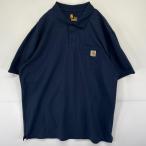 古着 カーハート Carhartt 半袖 ポロシャツ ワンポイント ロゴ 胸ポケ 大きいサイズ 3ボタン 2XL ネイビー 無地 メンズ