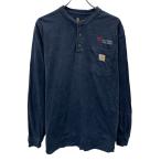 Carhartt 長袖 ロゴTシャツ L ネイビー カーハート ハーフボタン 胸ポケット ロンT ロングTシャツ 古着卸 アメリカ仕入 a705-5212