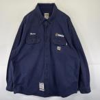 古着 カーハート Carhartt 長袖シャツ ボタンダウン ワークシャツ ワンポイントロゴ 企業ロゴ FR 大きいサイズ ネイビー メンズ