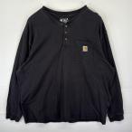 古着 カーハート Carhartt 長袖Tシャツ ロンT ヘンリーネック ワンポイントロゴ ポケット プルオーバー XXL ブラック メンズ