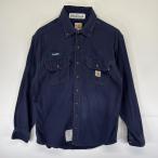 古着 カーハート Carhartt 長袖 ワークシャツ ワンポイントロゴ 企業ロゴ 大きいサイズ 作業着 ネイビー メンズ