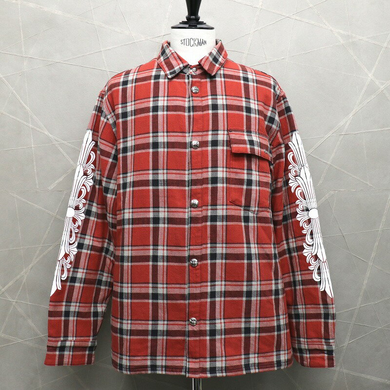 クロムハーツ【CHROMEHEARTS】チェックシャツジャケット/クロスボタン/レッドチェック/Lサイズ【中古】14170