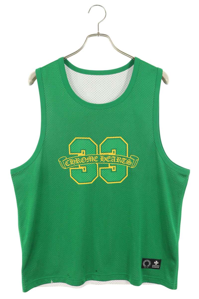 クロムハーツ Chrome Hearts サイズ:M BSKTBL JERSEY リバーシブルCHロゴプリントメッシュタンクトップ(グリーン×イエロー)【704052】【SJ02】【メンズ】【中古】bb410#rinkan*B