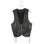 クロムハーツ サイズ:S 6BTN ZIP FRNT VEST バックラージスタークロスボールボタンレザーベスト 中古 SJ02