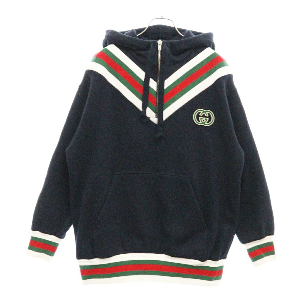 GUCCI(グッチ) サイズ:S 23AW フロント GGロゴ刺繍 ハーフジップ コットン パーカー ネイビー 717410 XJEVX【中古】【程度A】【カラーネイビー】【取扱店舗BRING大宮店】