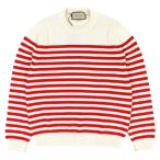 未使用品△GUCCI グッチ 23SS 740585 コットン ウール バックロゴ ボーダー柄 クルーネック 長袖ニット アイボリー レッド L 伊製 正規品