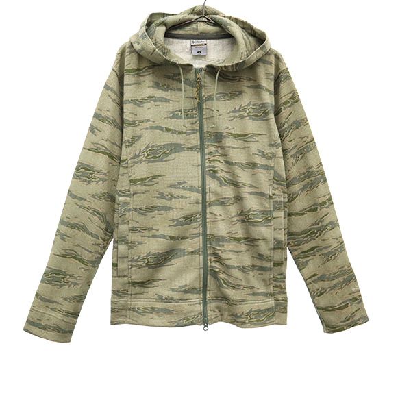 古着 Columbia コロンビア アウトドア 総柄 長袖 ジップパーカー S グリーン系 ダティルフーディ ロゴ刺繍 メンズ 【中古】 【PD】