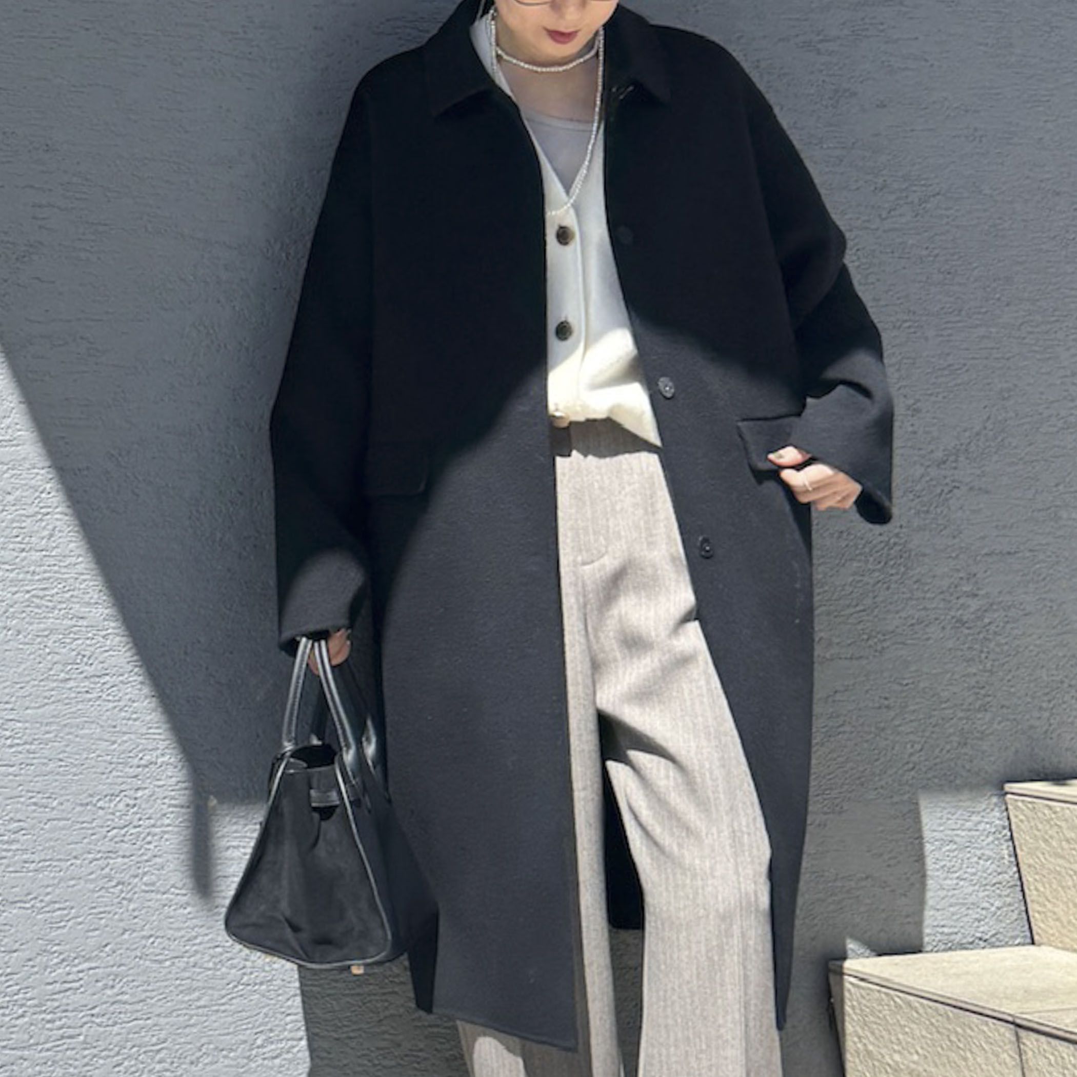 自由区(ジユウク)/【SHIHOさん着用】ウールリバーノーカラー コート