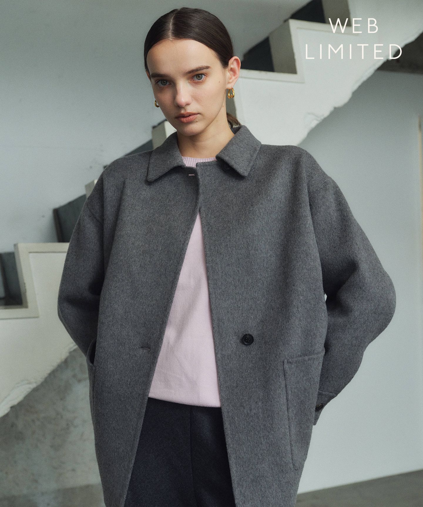BEIGE,(ベイジ)/【WEB限定】PAYSON / ウールリバーオーバーサイズステンカラーコート