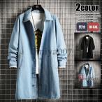デニムコート メンズ スプリングコート ステンカラー コート ロング丈 デニムジャケット アウター ブラック ブルー