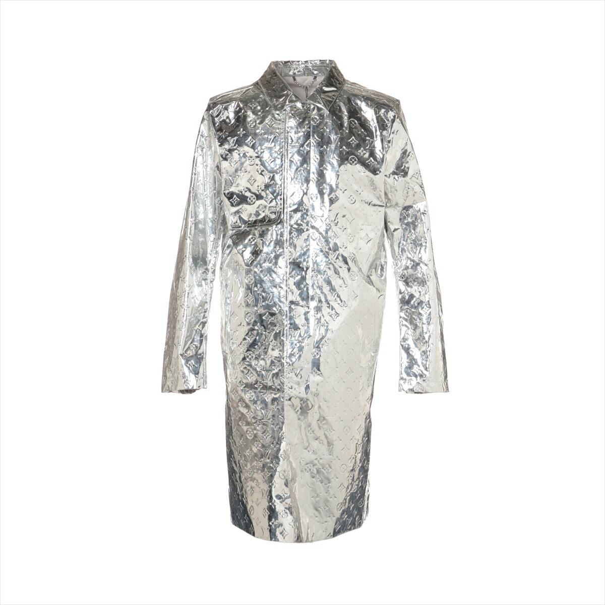 【中古】ヴィトン 21AW ポリエステル×ポリウレタン ステンカラーコート メンズ シルバー モノグラム RM212
