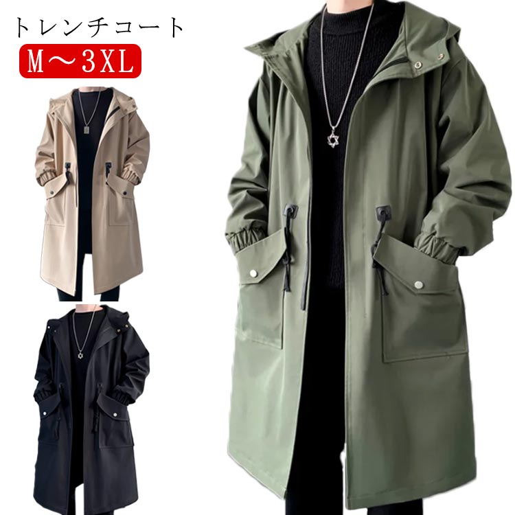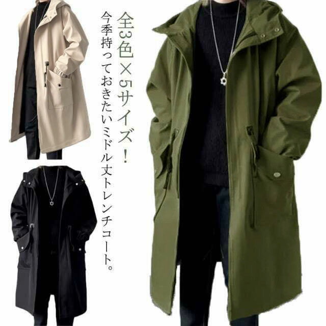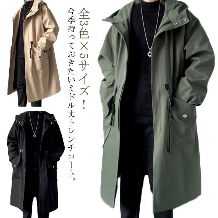 ステンカラーコート フード付き トレンチコート チェスターコート ハーフコート ダッフルコート 秋物 薄手 裏地付き 通勤 ミドル丈 ライトアウター オーバーサイズ メンズ ゆったり カジュアル 春 秋 冬 カジュアル おしゃれ シンプル ライトアウター