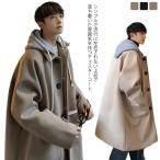 フード付き 無地 メンズ メルトンコート ダッフルコート コート ダッフルコート ロングコート ロング丈 ロング丈 カジュアル ストリート 秋冬