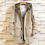 チェスターコート 春秋 ステンカラーコート メンズ アウター フード付き ロングコート 通勤 通学 カジュアル おしゃれ 新作 かっこいい シンプル