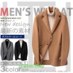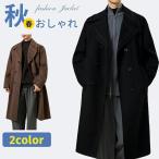 ダブル チェスターコート メンズ メルトン ウール ロングコート アウター オフィス カジュアル ビジネスジャケット ウールコート ダブルコート 冬 コート