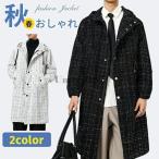チェスターコート メンズ おしゃれ 薄手 ロングジャケット チェック柄 マウンテンパーカー 春 アウター 秋服 トレンチコート ひざ上 ジャケット カジュアル 通勤