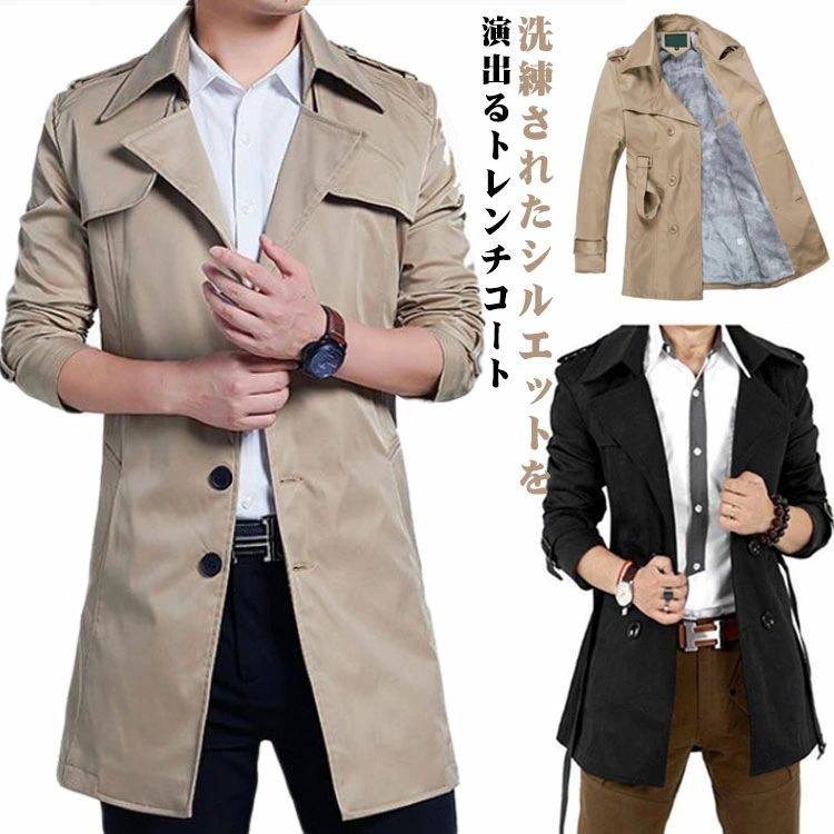 トレンチコート メンズ ロング丈 ビジネス ロングコート スプリングコート 春秋冬 コート Aライン ミディアム丈 春トレンチ セレモニー 通勤 エレガント フォーマル 春 秋 M L XL 2XL 送料無料