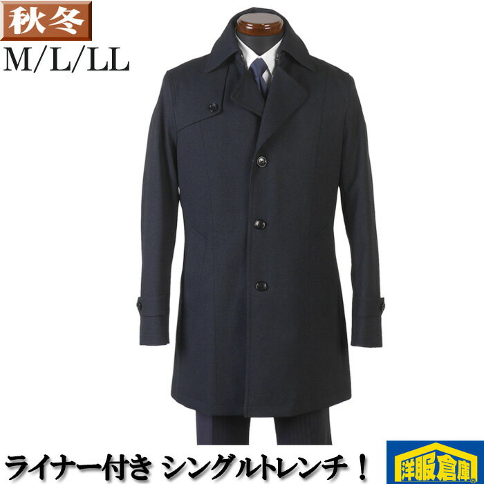 【30%OFF】シングル トレンチコート メンズ ビジネスコート ライナー付きLサイズ ナチュラルストレッチ 紺 17600 RC2616-g3-
