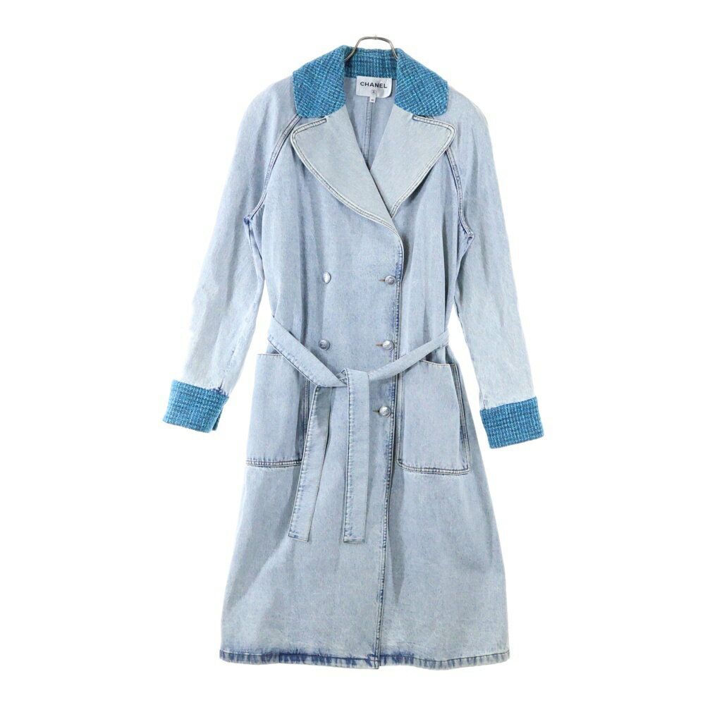 CHANEL(シャネル) サイズ:40 ココマークボタン ツイード切り替え ウォッシュ加工 デニム トレンチ ロングコート インディゴ/ブルー P72303V63954【中古】【程度A】【カラーブルー】【取扱店舗BRING心斎橋店】