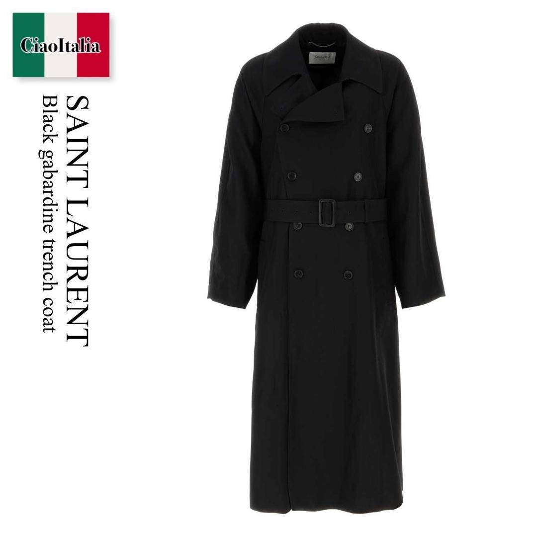 【数量限定・在庫限り・早い者勝ち!】 サンローラン / Saint Laurent Black Gabardine Trench Coat / 848512 Y5J40 / 848512 Y5J40 1000 / 848512Y5J40 / 848512Y5J40 1000 / 848512Y5J401000 / トレンチコート