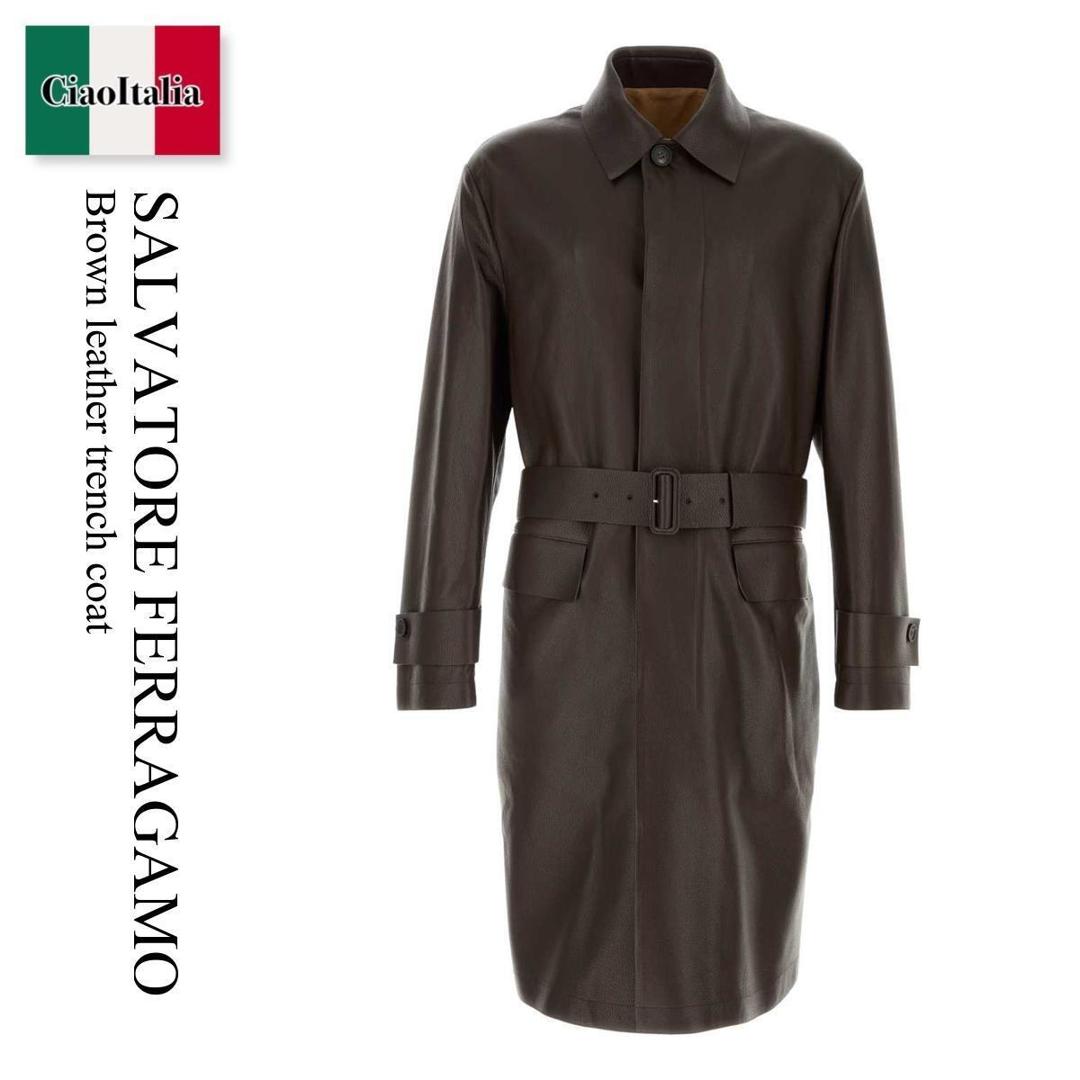 【数量限定・在庫限り・早い者勝ち!】 フェラガモ / Salvatore Ferragamo Brown Leather Trench Coat / 144896 788344 / 144896 788344 EXPRESSO / 144896788344 / 144896788344 EXPRESSO / 144896788344EXPRESSO / トレンチコート