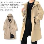 メンズスプリングコートモッズコート春コートフード付きロングジャケットトレンチコートアウター無地ミリタリーお兄系カジュアル
