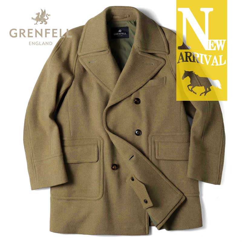 【40%OFF】GRENFELL / グレンフェル|ウールメルトンビーバーハーフ丈ポロコート(CRAWFORD)|(キャメルベージュ)| 秋冬 アウター ピーコート ダブルブレストコート 英国製 メンズ イギリス アウトレット