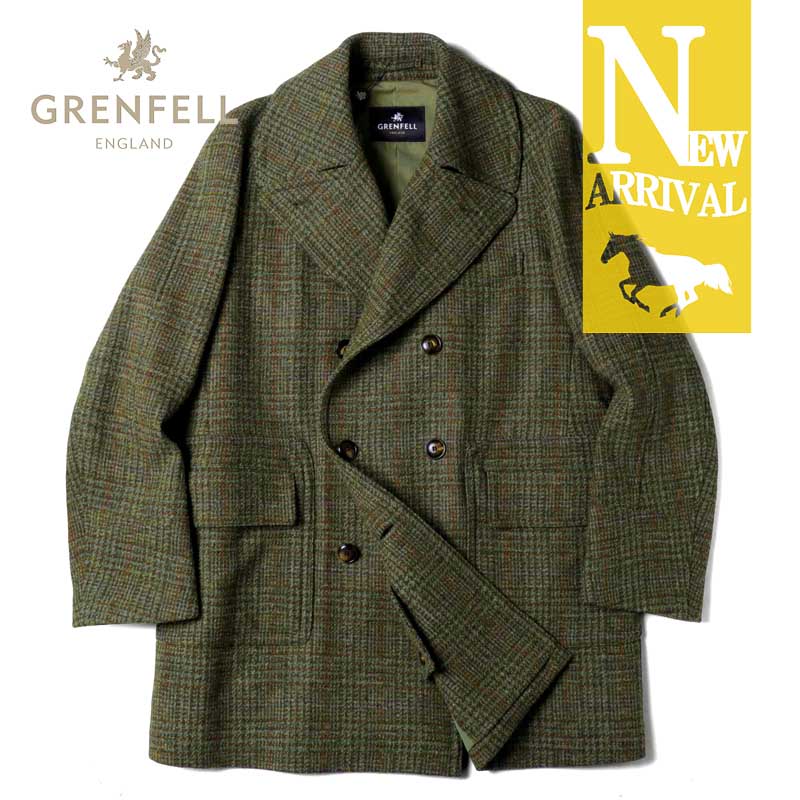 【40%OFF】GRENFELL / グレンフェル|ウールツイードグレンチェック柄ハーフ丈ポロコート(CRAWFORD)|(グリーン×ブラウン×テラコッタ)| 秋冬 アウター ピーコート ダブルブレストコート 英国製 メンズ イギリス アウトレット