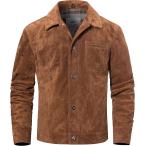 メンズ コート レザージャケット ライダース スエードデニムジャケット 本革 防寒 厚手 防風 春秋 MDM( ブラウン, S)