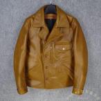 高品質 カウハイド 復刻50's カーコート レザージャケット ナチュラルブラウン Mサイズ ドライビング ブレーキマン (株)C&Jオイルレザー 牛革