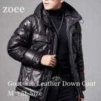 ゴートレザー 山羊革 ダウン90% フード ジャケット コート 本革 メンズ 秋/冬 アウター ブラック M/L/2L/3L/4L/5L l4b35