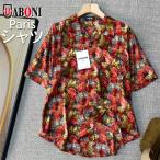 30%OFF シャツ アロハシャツ 半袖 EU製 Uaboni Paris ユアボニ シルク混 薄手 爽やか 個性 葉柄 アロハ トップス 開襟シャツ カジュアル ゆったりリゾート 夏