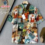 30%OFF シャツ アロハシャツ 半袖 EU製 christian milada ミラノ発 リネン混 麻 薄手 個性 パッチワーク カラフル アロハ トップス 開襟 カジュアル ゆったり