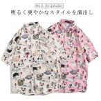 派手 アロハシャツ ねこ シャツ 猫柄 柄シャツ 薄手 おしゃれ 可愛い メンズ シャツ 夏 おもしろ t 猫 カジュアル トップス レディース 柄シ