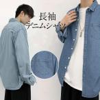 シャツ メンズ デニム ウエスタンシャツ カジュアル 長袖 無地 デニムシャツ トップス おしゃれ ウエスタン 長袖シャツ 紳士服 薄手 秋 韓国風