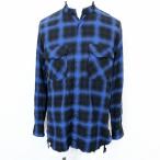 エディション EDITION カットオフシャツ ウエスタン バッファローチェック オープンバンドカラー ドットボタン 長袖 XS ブルー 青 メンズ