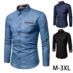 デニムシャツ メンズ シャツ 長袖シャツ デニム シャツ スリム カジュアルシャツ ウエスタンシャツ 長袖 無地 トップス ワークシャツ 通学 通勤 春秋服