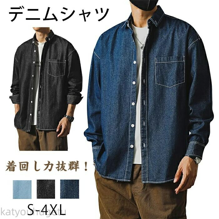 ◆全品2点で20%OFF◆デニムシャツ メンズ 春秋 長袖 綿100% ゆったり おしゃれ フィット シャツジャケット 無地 トップス アメカジ インディゴ 細身 着痩せ メンズシャツ 通学 通勤 かっこいい 紳士 ボタン ライトアウター 人気 メンズファッション